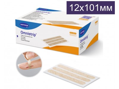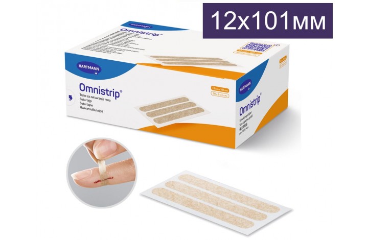 OMNISTRIP — гипоаллергенные стерильные хирургические полоски для закрытия послеоперационных швов, доступные в размере 12 мм х 101 мм в упаковке по 300 штук от производителя HARTMANN.