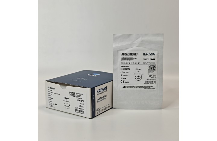 - Химический состав: Полидиоксанон (100 %) - синтетический, рассасывающийся, монофиламентный шовный материал;